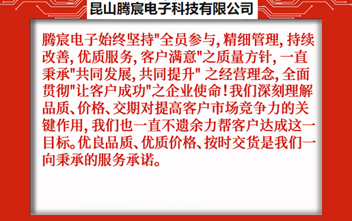 昆山騰宸電子科技有限公司位于中國(guó)線路板加工之都昆山千燈,公司專(zhuān)注于電路板研發(fā)設(shè)計(jì)、PCB抄板、元器件采購(gòu)、SMT貼片加工、組裝測(cè)試,為客戶提供一站式電子制造服務(wù)。騰宸電子始終堅(jiān)持"全員參與,精細(xì)管理,持續(xù)改善,優(yōu)質(zhì)服務(wù),客戶滿意"之質(zhì)量方針,一直秉承"共同發(fā)展,共同提升" 之經(jīng)營(yíng)理念,全面貫徹"讓客戶成功"之企業(yè)使命!我們深刻理解品質(zhì)、價(jià)格、交期對(duì)提高客戶市場(chǎng)競(jìng)爭(zhēng)力的關(guān)鍵作用,我們也一直不遺余力幫客戶達(dá)成這一目標(biāo)。優(yōu)良品質(zhì)、優(yōu)質(zhì)價(jià)格、按時(shí)交貨是我們一向秉承的服務(wù)承諾。 ...